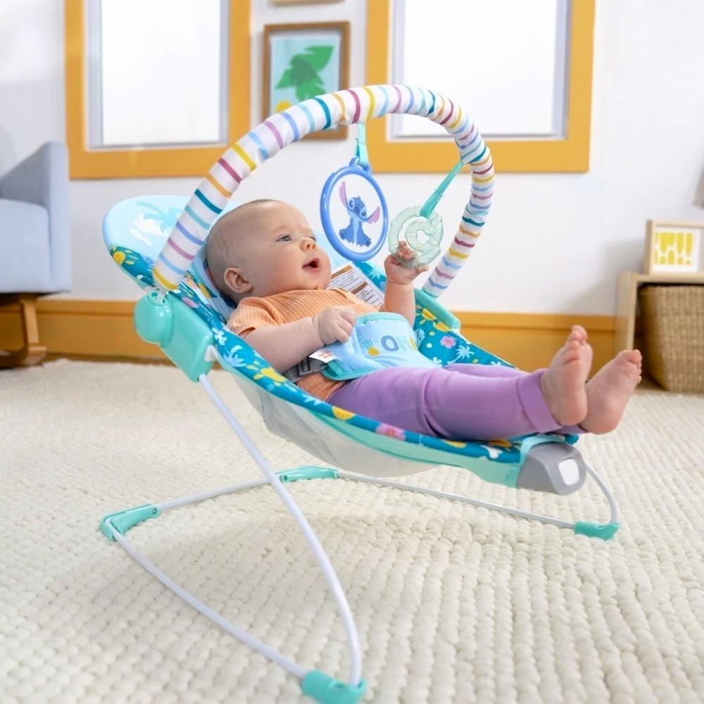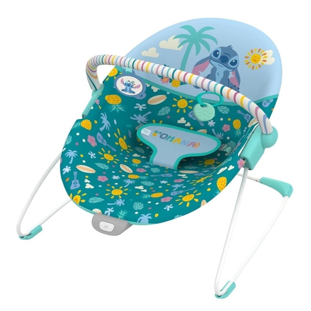 Bouncer vibratorio con temática Stitch 'Ohana Paradise y colores vibrantes.