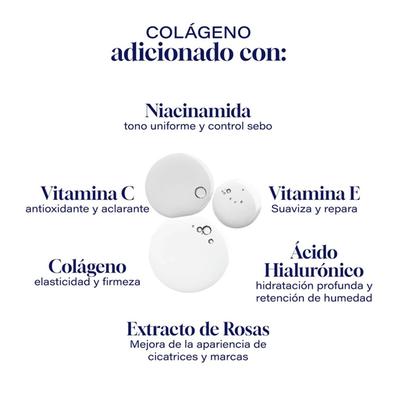 Contiene Ácido Hialurónico, Niacinamida y extracto de Rosas.