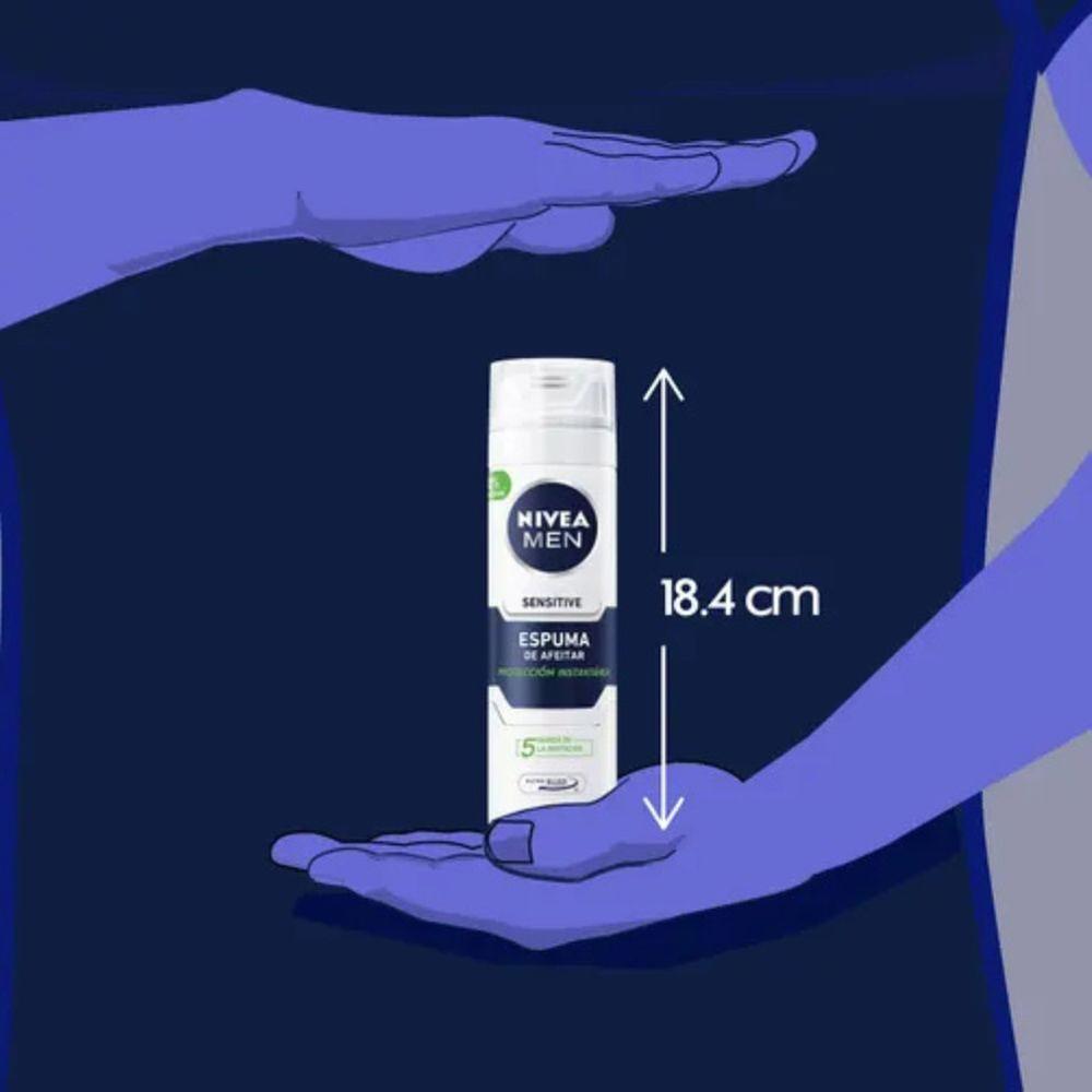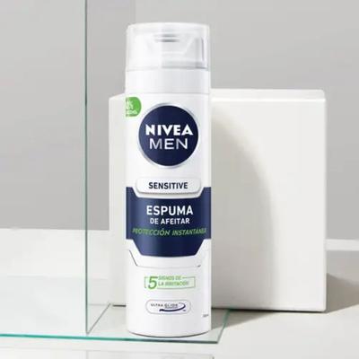 Protege instantáneamente tu piel de los cinco signos más comunes de irritación del afeitado con la espuma de afeitar Nivea Men Sensitive, te ayuda a evitar el enrojecimiento, la tirantez y micro cortes. Su fórmula con manzanilla y vitamina E suaviza el vello de la barba, para un afeitado especialmente suave. No contiene alcohol etílico y está dermatológicamente probada por hombre con piel sensible.