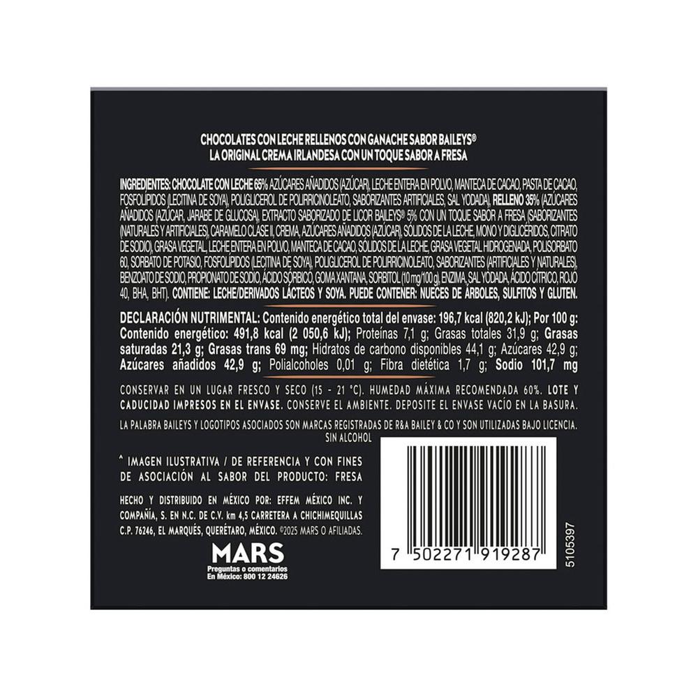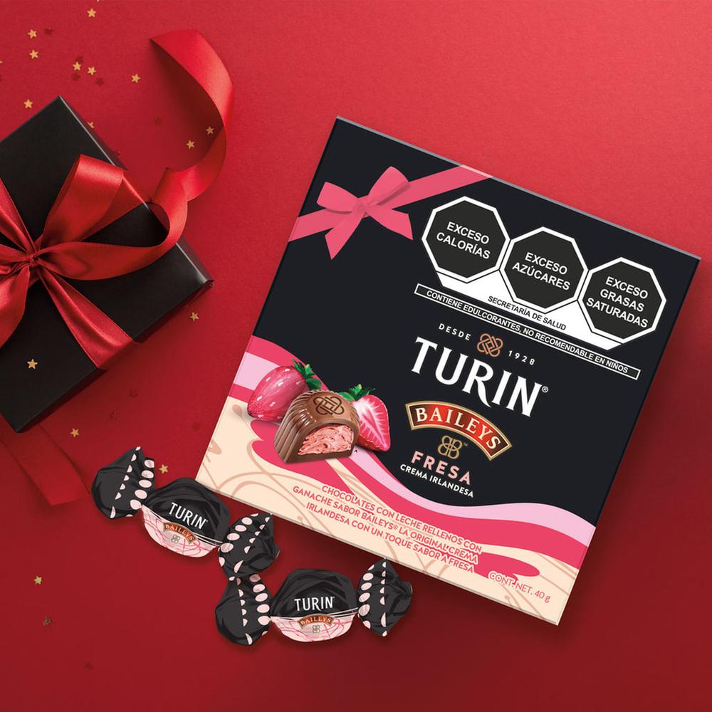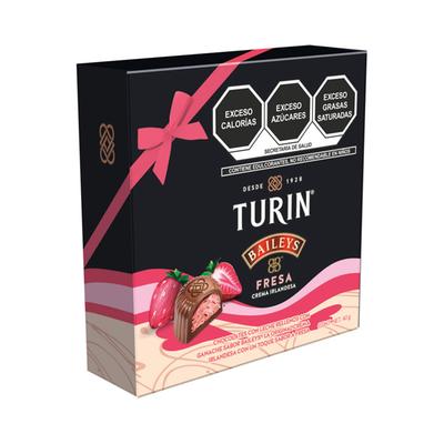 Disfruta de la rica combinación de sabores que tienen los chocolates de la marca Turin. Su sabor único del licor Baileys, crea una experiencia de textura cremosa que se funde en la boca, liberando un delicioso y suave toque de crema irlandesa con la combinación de un delicioso sabor a fresa. Perfectos para compartir en ocasiones especiales o para disfrutar como un pequeño lujo personal.