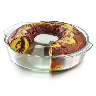 Equipa tu cocina y prepara exquisitos postres con el molde para rosca Pyr-o-Rey. Este redondo modelo es idóneo para elaborar recetas profesionales de manera cómoda en casa, debido a que es seguro de usar en horno convencional, de microondas y refrigerador. Está fabricado de vidrio transparente y duradero que te permitirá vigilar la cocción, servir tu creación con estilo y ver el contenido en todo momento.