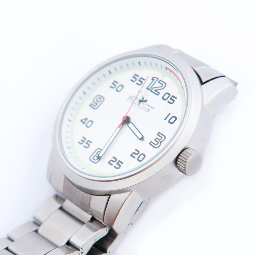 Reloj Polo Club Hombre Con Extensible De Acero Dial Blanco