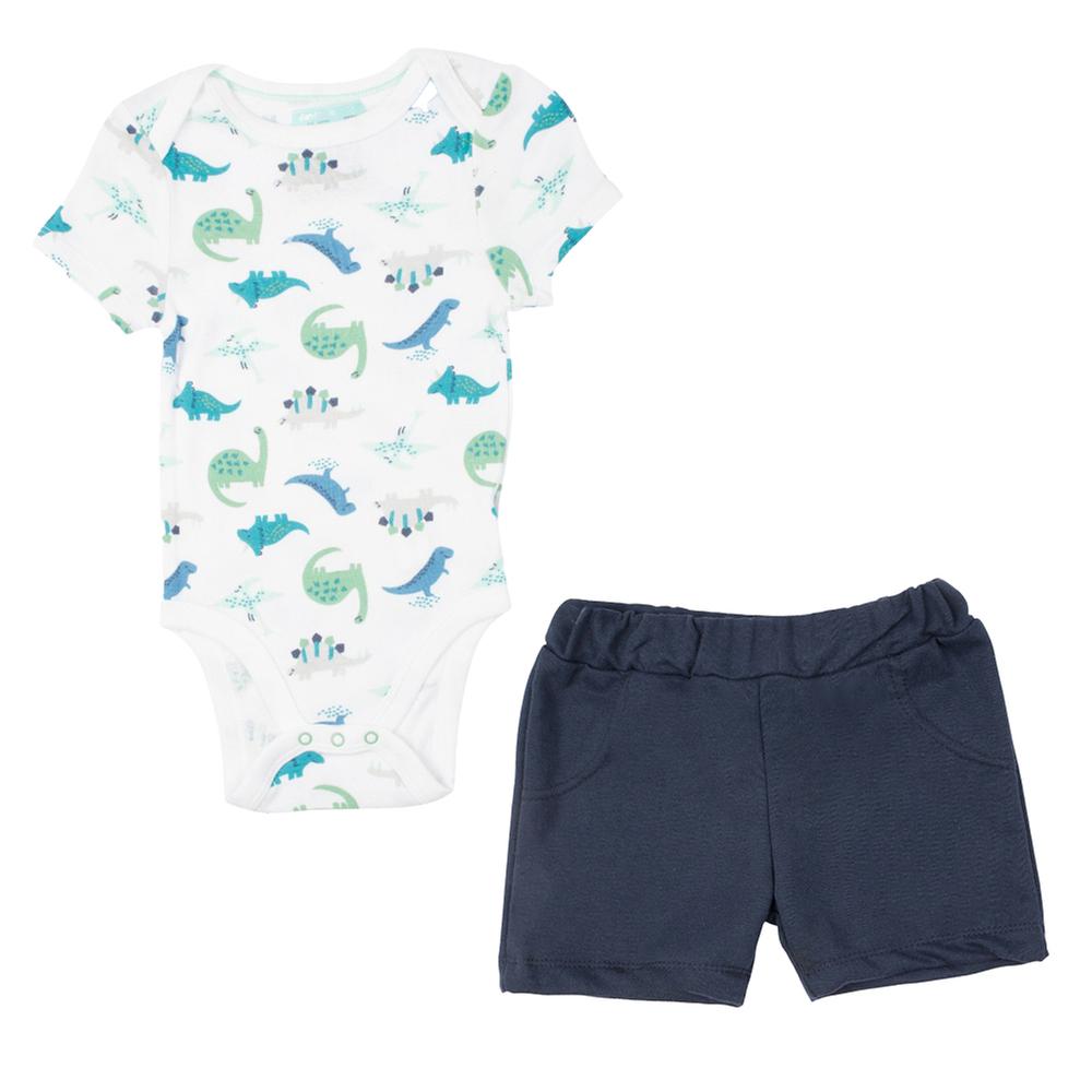 Conjunto Fantastic Bebé Estampado De Dinosaurios Con Short Liso