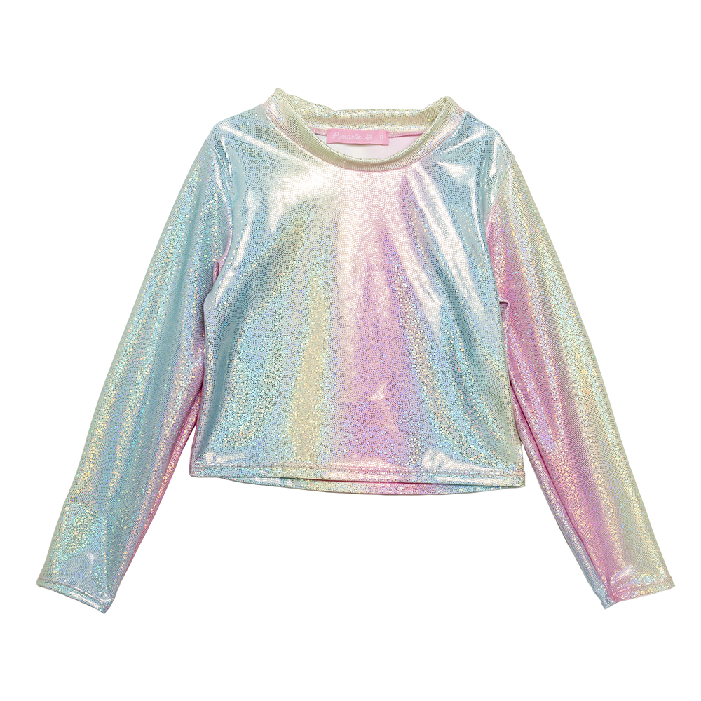 Top: Cuello redondo, manga larga, liso, diseño tornasol