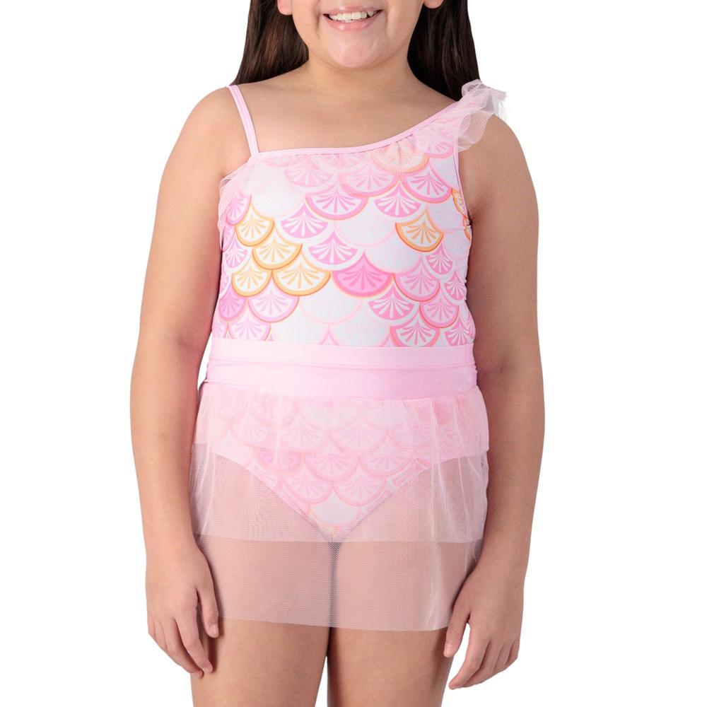 Traje De Baño Fantastic Niña Completo Fullprint Sirena Flores Con Olán