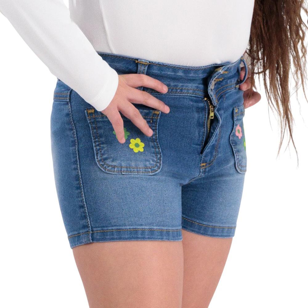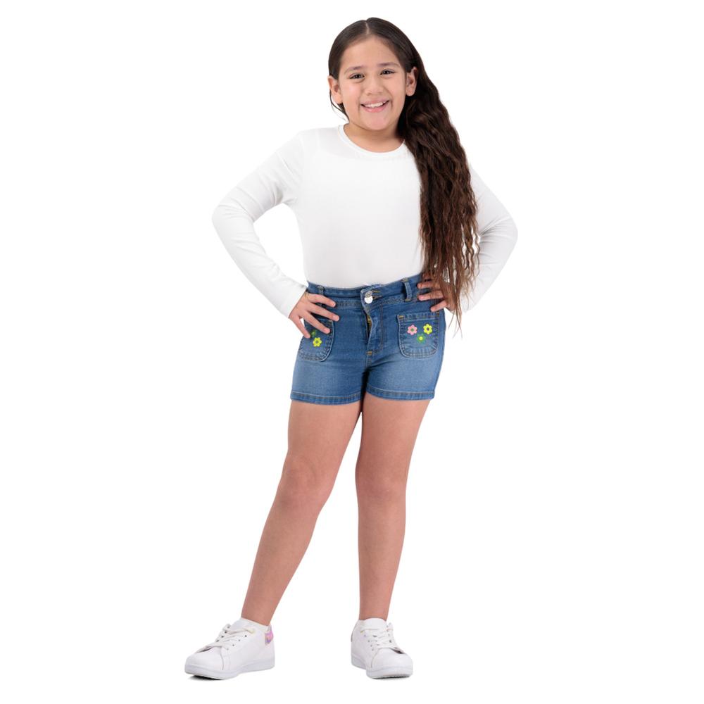 Short Fantastic Niña Pretina Ancha Bordado De Flores