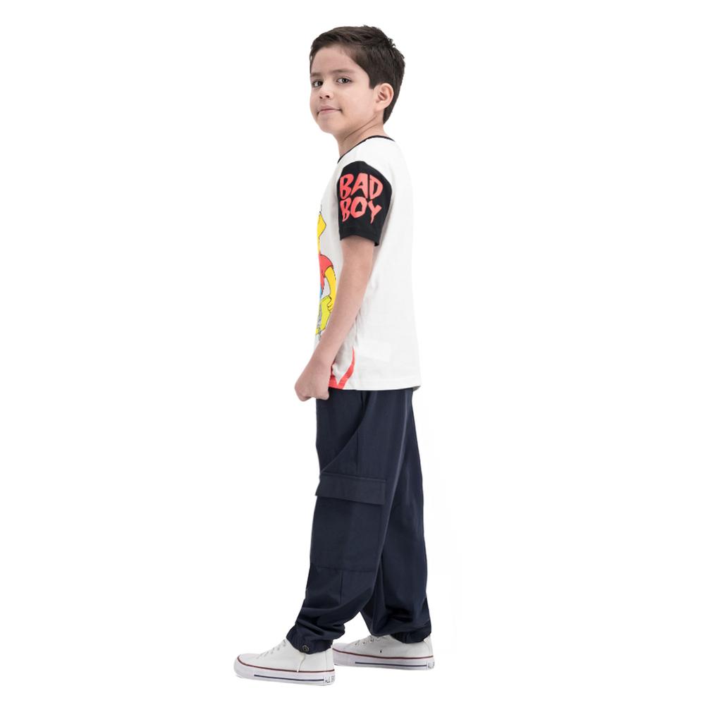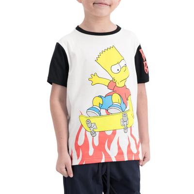 Playera inspirada en la energía de Bart Simpson sobre su patineta. Ideal para niños activos que disfrutan de un estilo urbano y fresco.