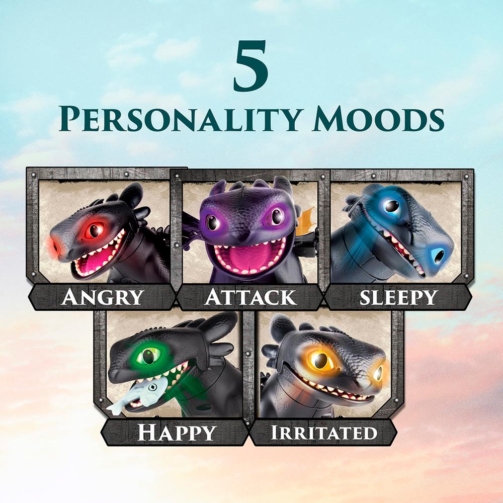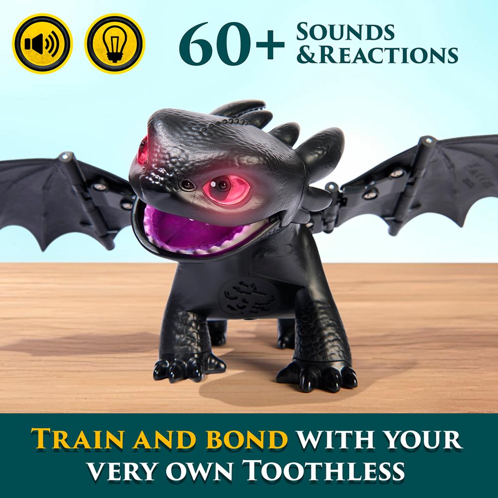 Lleva a casa la aventura con la figura Chimuelo Interactivo de Cómo Entrenar a Tu Dragón. Interactúa con su pez incluido, gana su confianza y descubre sus cinco personalidades. Desbloquea juegos como sígueme y mantente alejado, activa el ataque de plasma con alas de 51 cm y ojos azules parpadeantes. Con más de 60 sonidos, fomenta el juego de imitación y la creatividad en niños de 5 a 7 años.