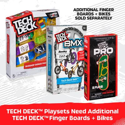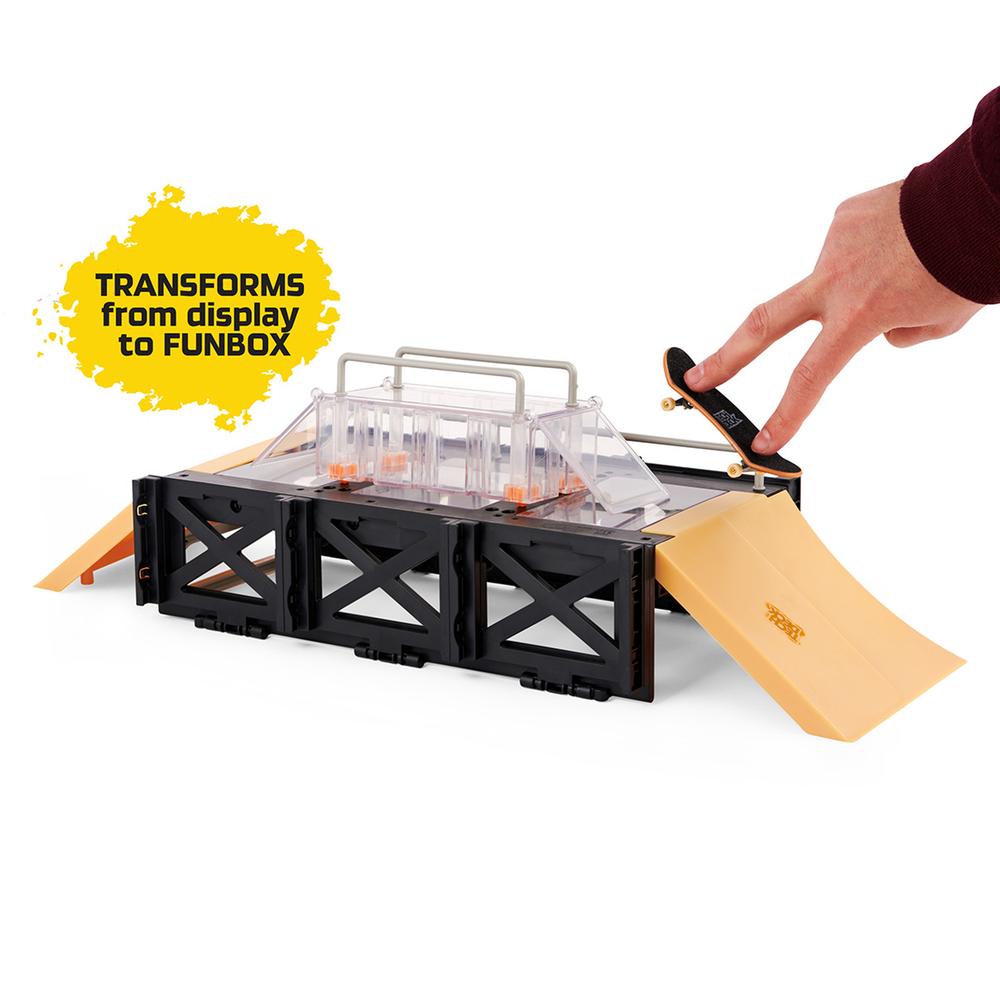 Contenido Del Paquete: Incluye: 1 fingerboard de Tech Deck, 1 estuche Play and Display, 1 funbox abatible, 2 kickers móviles, 4 conectores verticales, 1 kicker derecho de doble inclinación, 1 kicker izquierdo de doble inclinación, 1 baranda alta, 2 barandas largas, 1 guía de instrucciones.