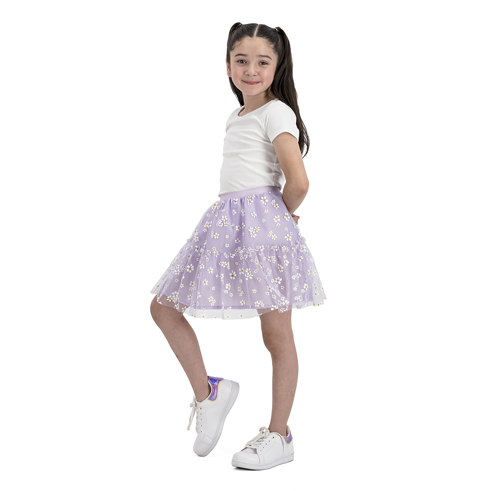 ¡Un toque romántico y femenino para su look! Esta falda mesh con diseño de flores es perfecta para las pequeñas soñadoras. El diseño delicado y el tejido ligero le darán un toque especial a su outfit. ¡Ideal para combinar con tops o blusas!