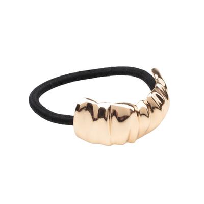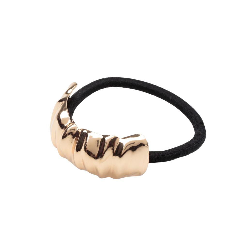 Liga para cabello Mxstaza con elegante detalle metálico dorado, ideal para complementar cualquier peinado con un toque sofisticado. Su diseño práctico y resistente permite sujetar el cabello con comodidad, sin maltratarlo y manteniendo un estilo moderno.