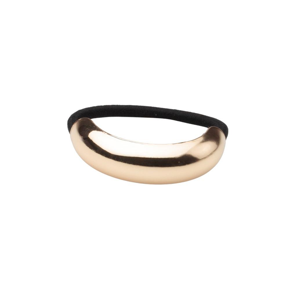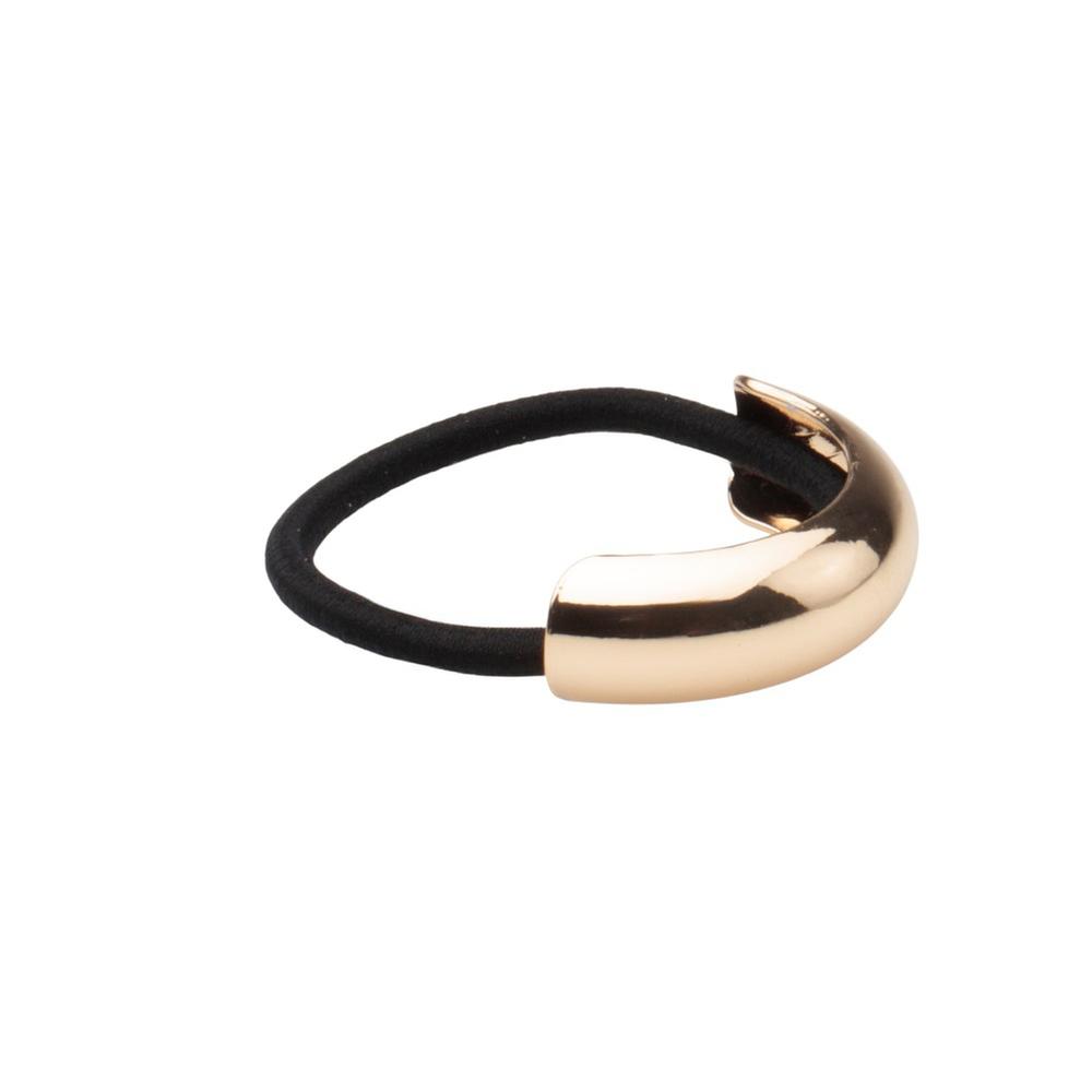 Liga para cabello Mxstaza con elegante detalle metálico dorado, ideal para complementar cualquier peinado con un toque sofisticado. Su diseño práctico y resistente permite sujetar el cabello con comodidad, sin maltratarlo y manteniendo un estilo moderno.