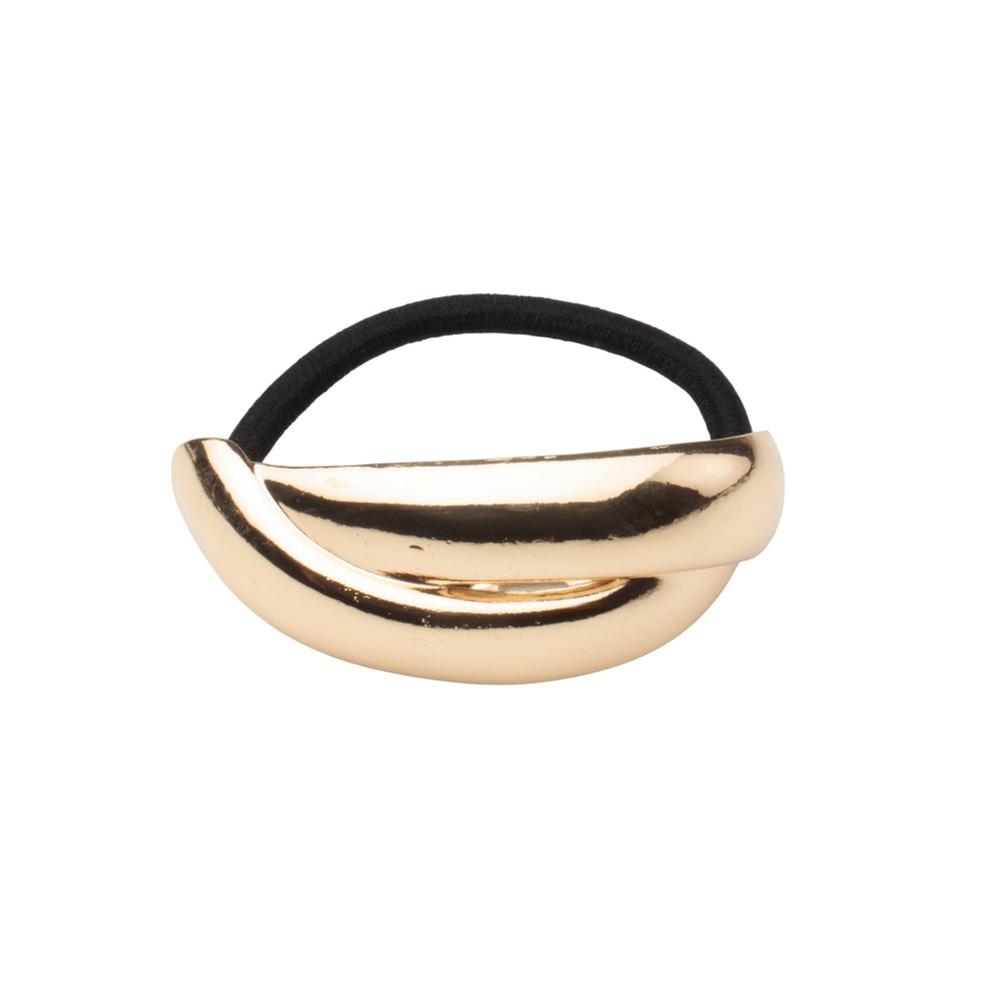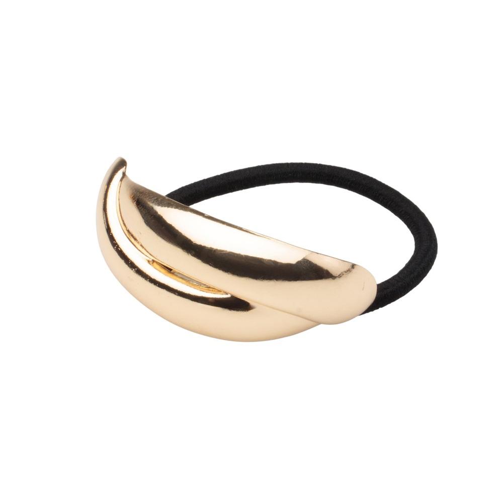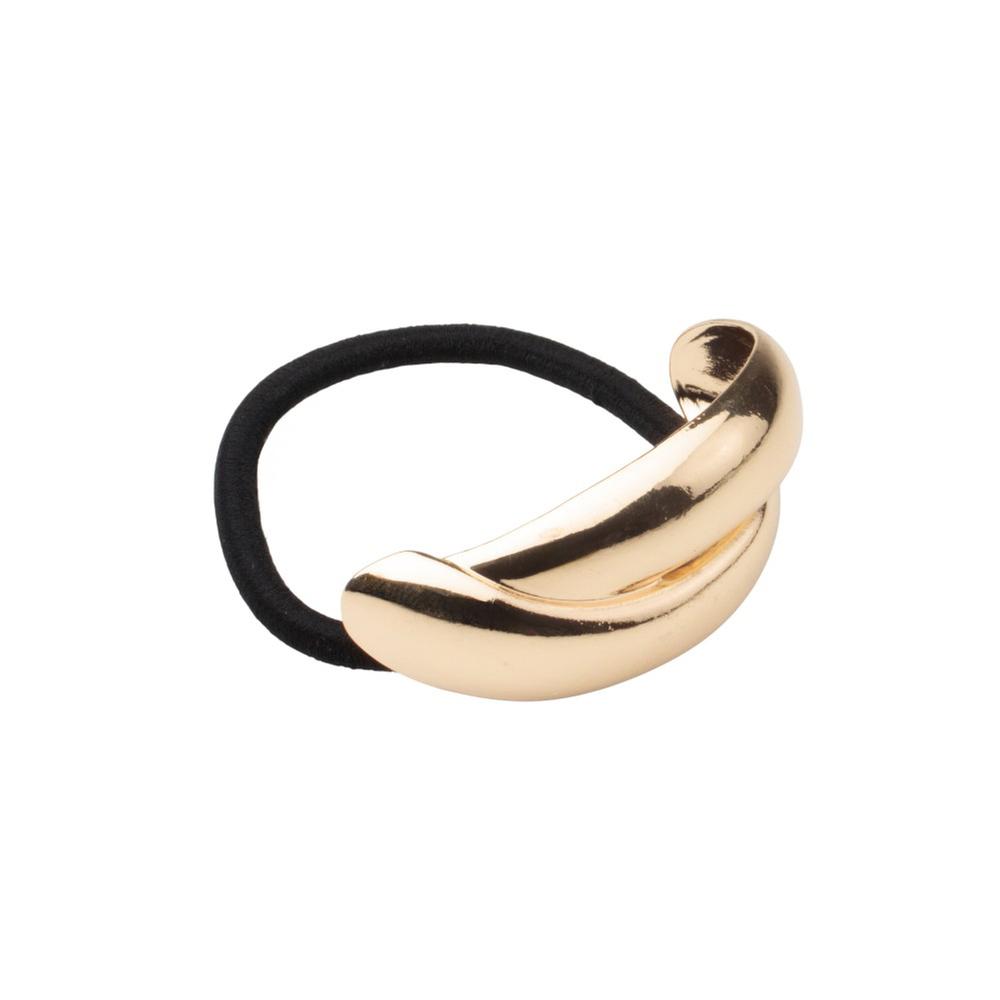 Liga para cabello Mxstaza con elegante detalle metálico dorado, ideal para complementar cualquier peinado con un toque sofisticado. Su diseño práctico y resistente permite sujetar el cabello con comodidad, sin maltratarlo y manteniendo un estilo moderno.