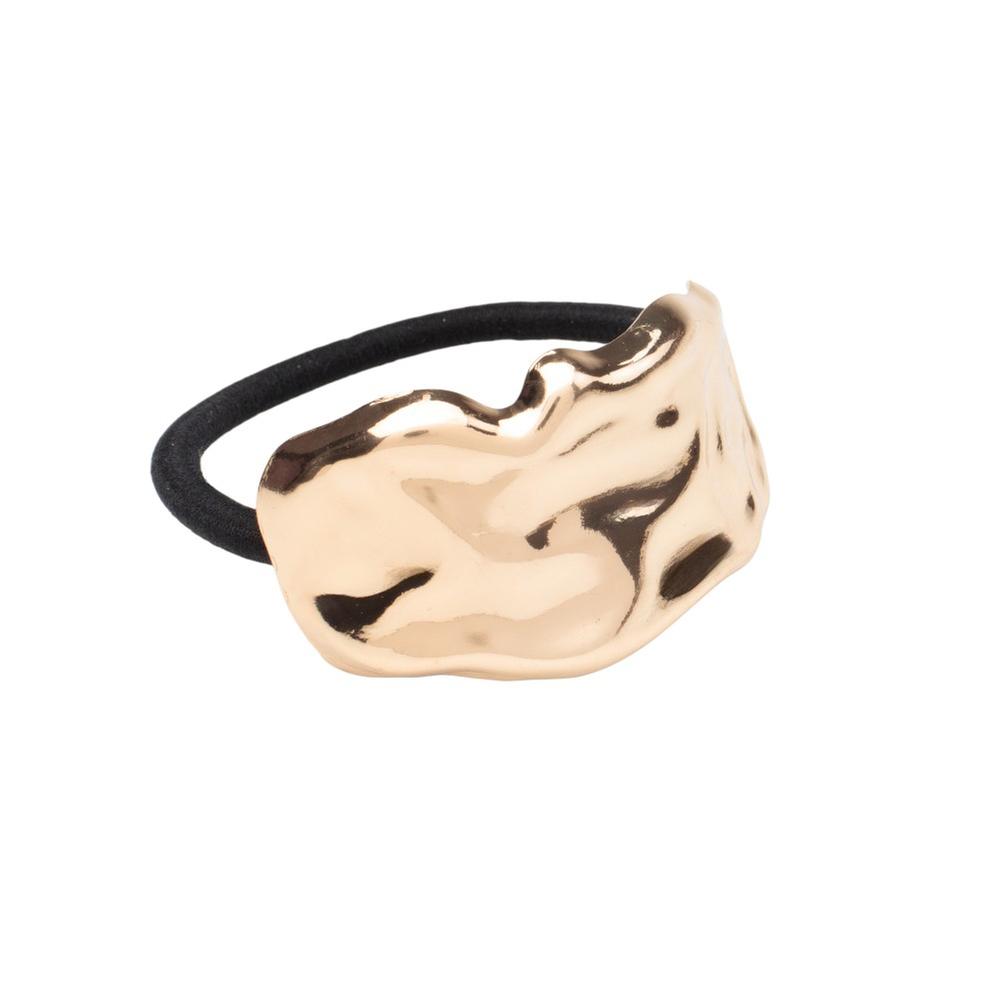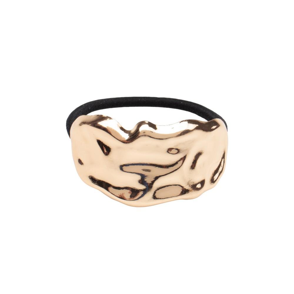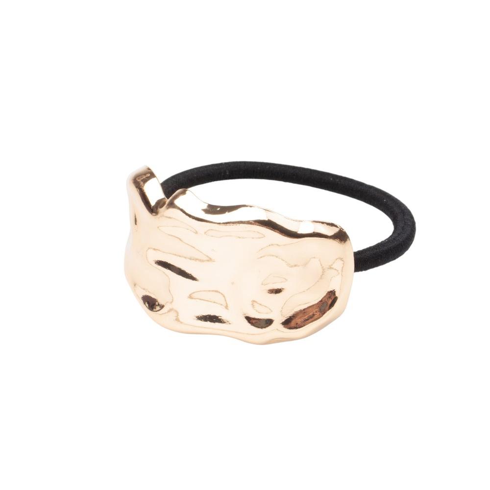 Liga para cabello Mxstaza con elegante detalle metálico dorado, ideal para complementar cualquier peinado con un toque sofisticado. Su diseño práctico y resistente permite sujetar el cabello con comodidad, sin maltratarlo y manteniendo un estilo moderno.