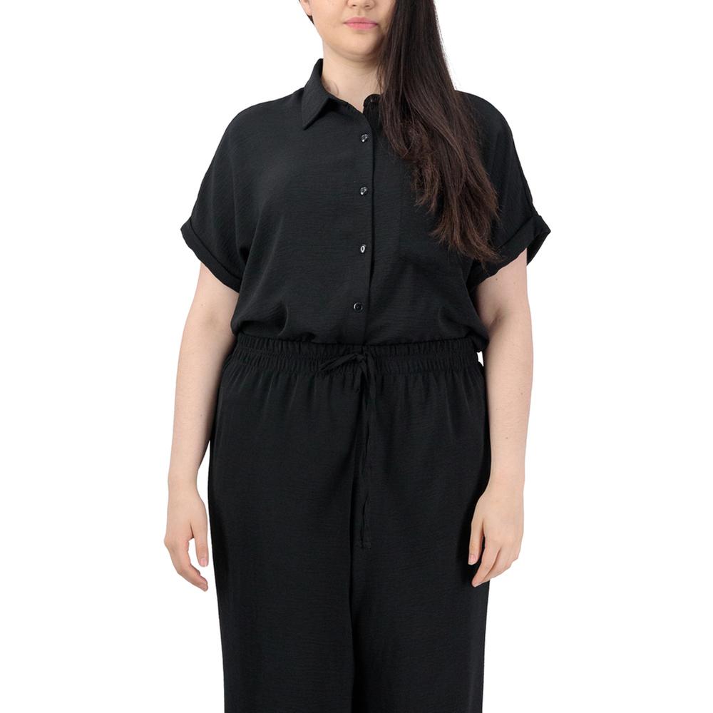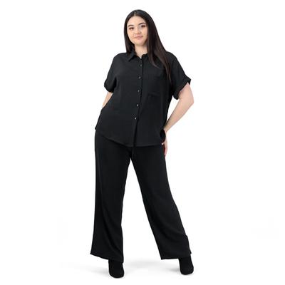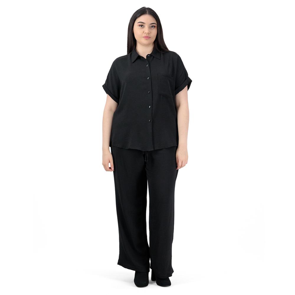 Sofisticación y armonía en un conjunto coordinado. La blusa de manga corta con botones al tono y el pantalón con ajuste de jareta crean un estilo impecable y relajado para tu día a día.