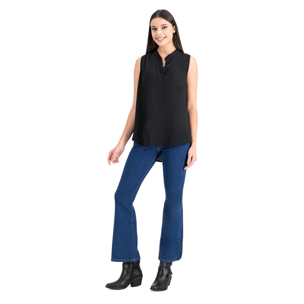 Esta blusa para mujer combina un diseño moderno y favorecedor con un toque de frescura ideal para cualquier ocasión. Su cuello en V realza la figura, mientras que el corte asimétrico aporta movimiento y estilo único. La bolsa en el pecho añade un detalle sutil y funcional, convirtiéndola en una prenda versátil que se adapta fácilmente a looks casuales o más arreglados.