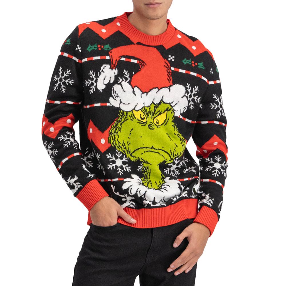 Este suéter para hombre presenta un diseño full print del Grinch que aporta diversión y estilo a tu outfit, con cuello redondo que brinda comodidad y ajuste en puños y ruedo para un calce perfecto y seguro.