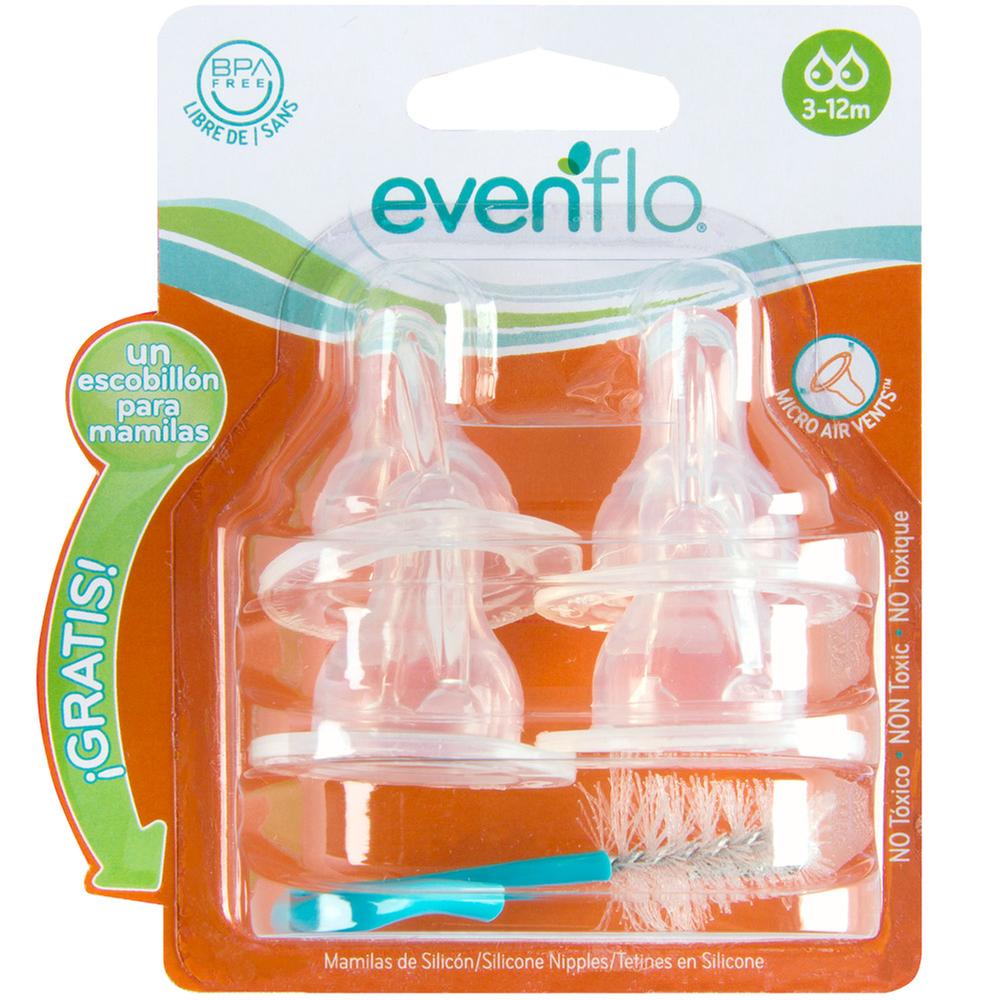 La suavidad que se adapta a cada toma. Disfruta de un flujo continuo y natural que cuida de tu bebé. El pack de 4 mamilas estándar Evenflo está elaborado con silicona grado alimenticio y anillos flexibles que se adaptan al paladar del bebé para un flujo continuo y cómodo. Su diseño ayuda a reducir cólicos y es ideal para bebés a partir de 3 meses. Incluye un escobillón para una limpieza profunda y son libres de BPA.