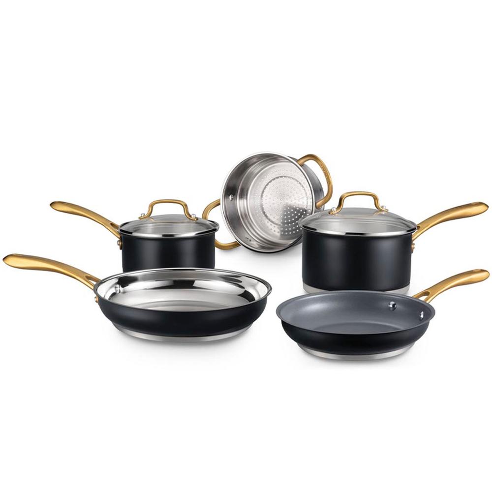 • Batería de Cocina Cuisinart Negro Acero Inoxidable 7 Piezas