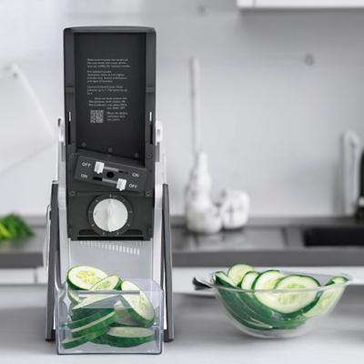Ajuste los controles deslizantes para cambiar entre las opciones de corte y crear rodajas perfectamente uniformes, julianas gruesas y finas y dados de alimentos.