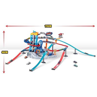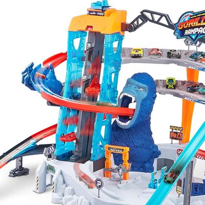 ¡Prepárate para una emocionante aventura de Metal Machines con el increíble set Gorilla Rampage! Enfréntate a la trampa de mano y una monstruosa boca de gorila para demostrar tu valentía. Incluye un garaje de varios niveles que los vehículos pueden alcanzar a través del elevador operado manualmente. Esta pista también te ofrece espacios de estacionamiento para varios autos, así como talleres mecánicos de reparación y una plataforma que alberga un helicóptero de rescate capaz de transportar autos.