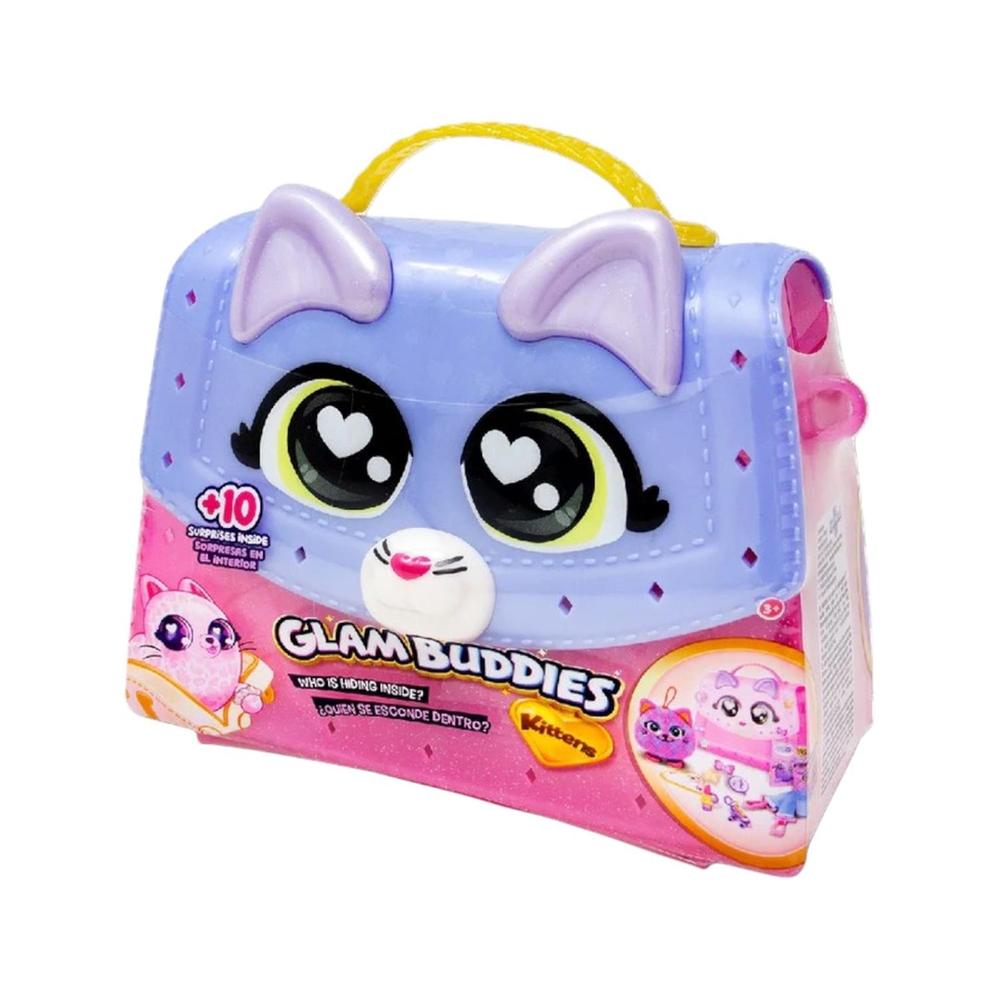 Descubre la diversión y la sorpresa con la Cartera Glam Buddies Kittens “¿Quién se esconde dentro?” Este adorable accesorio combina estilo y entretenimiento, ya que dentro de la cartera se esconde un tierno gatito sorpresa. Ideal para niñas que aman la moda y los juguetes coleccionables, ¡perfecta para llevar a todos lados!